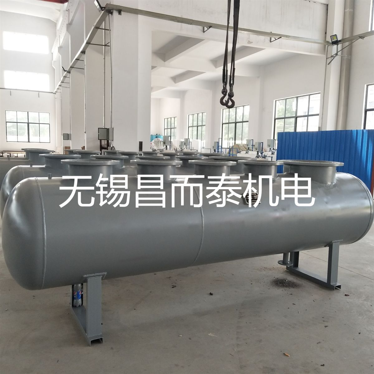 分集水器是由集水器和分水器組合而成的水流量分配和會集裝置。分水器是將一路進水通過一個容器分為幾路輸出的設備,而集水器則是將多路進水通過一個容器一路輸出的設備。其管理若干的支路管道,分別包括回水支路和供水支路,其較大多為DN350-DN1500不等,用碳鋼或不銹鋼板制作,屬于壓力容器類專業(yè),其需要安裝壓力表溫度計。它一方面將主干管的水按需要進行流量分配,保證各區(qū)域分支環(huán)路的流量滿足負荷需要,同時還要將各分支回路的水流匯集,并且輸入回水主干管中,實現(xiàn)循環(huán)運行。其回水再利用,可達到更節(jié)能的效果,可以同時滿足供熱與制冷的需要,其廣泛應用于鍋爐、中央空調(diào)、工業(yè)循環(huán)冷卻水系統(tǒng)、熱水系統(tǒng)。