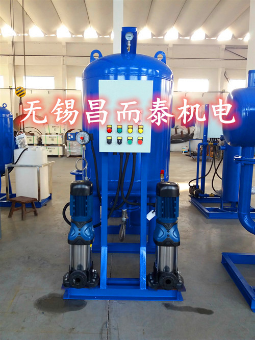 定壓補(bǔ)水裝置是由定壓單元和常壓脫氣膨脹罐兩大部分組成,機(jī)組運(yùn)行時(shí),系統(tǒng)是通過定壓單元來實(shí)現(xiàn)低壓自動補(bǔ)水、超壓自動溢流,保證系統(tǒng)定壓,系統(tǒng)在排氣過程中,是將高壓帶氣泡的水通過常壓脫氣膨脹罐進(jìn)行常壓脫氣,析除循環(huán)水中的氣體。