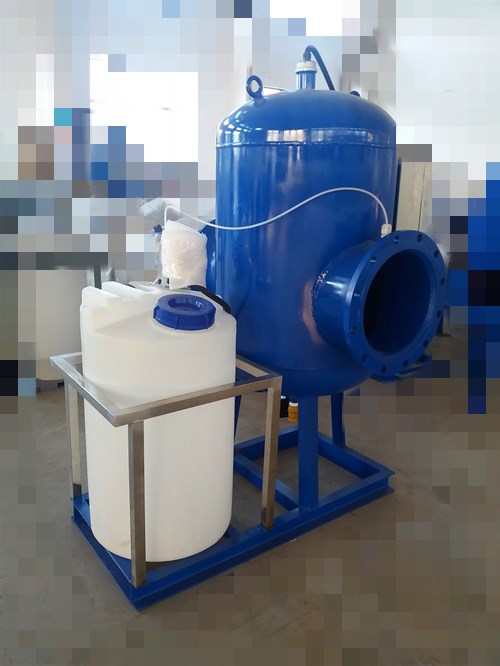 全自動物化水處理系統(tǒng)是由化學(xué)控制系統(tǒng)和物理控制系統(tǒng)兩部分組成。當(dāng)不間斷工作的物理系統(tǒng)處理水系統(tǒng)過程中濃縮倍數(shù)過高時效果下降,迫使系統(tǒng)智能啟動在線化學(xué)處理向系統(tǒng)輸送藥劑進(jìn)行中和處理。此時由于水系統(tǒng)中臟物和脫落的水垢的增加,水的濁度會升高,當(dāng)所有臟物被攔截在過濾網(wǎng)的濾芯時,壓差智能裝置通過濾網(wǎng)進(jìn)出口壓力變化進(jìn)行排污及反沖洗。當(dāng)所有臟物徹底清除后,水質(zhì)調(diào)節(jié)系統(tǒng)又恢復(fù)到待機(jī)狀態(tài),物理處理系統(tǒng)也回到了有效處理狀態(tài)。整個的智控系統(tǒng)都是時刻在線監(jiān)控并處理水質(zhì)。