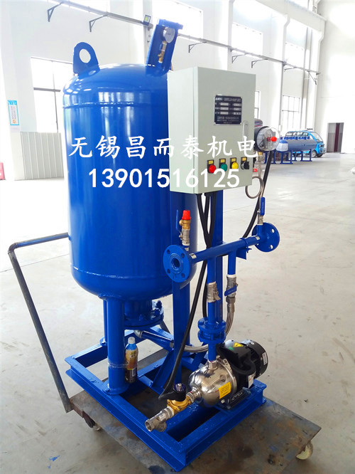 產品概述:DY系列定壓補水裝置由囊式壓力罐、水泵、控制箱、底架、壓力感應裝置、管道閥門等組合而成,是一種兼有升壓、調節(jié)、儲水、供水等多種功能的常用供水設備。用途:●用于生產、消防、生活系統(tǒng)加壓供水,一般稱之為囊式自動給水裝置?!裼糜诓膳⒖照{系統(tǒng)中作為穩(wěn)壓膨脹補水設備使用,一般稱為囊式落地式膨脹水箱。工作原理:定壓補水裝置設備采用系統(tǒng)靜壓作為膨脹水箱內的設計初始壓力水頭,采用保證系統(tǒng)內熱水不汽化的壓力作為膨脹水箱內動行終端壓力水頭。初始運行時首先啟動補水泵向系統(tǒng)及氣壓罐內的水室中充水,系統(tǒng)充滿后多余的水被擠進膠囊內。因為水的不可壓縮性,隨著水量的不斷增加,水室的體積也不斷的擴大而壓縮氣室,罐內的壓力也不斷的升高。當壓力達到設計壓力時,通過壓力控制器使補水泵關閉。當系統(tǒng)內的水受熱膨脹使系統(tǒng)壓力升高超過設計壓力時,多余的水通過安全閥排至補水箱循環(huán)使用,當系統(tǒng)中的水由于泄露或溫度下降而體積縮小,系統(tǒng)壓力降低時,膠囊中的水被不斷壓入管網補充系統(tǒng)的壓降損失,當系統(tǒng)壓力至設計允許的最低壓力時,通過壓力控制器使補水泵重新啟動向管網及氣壓罐內補水,如此周而復始。