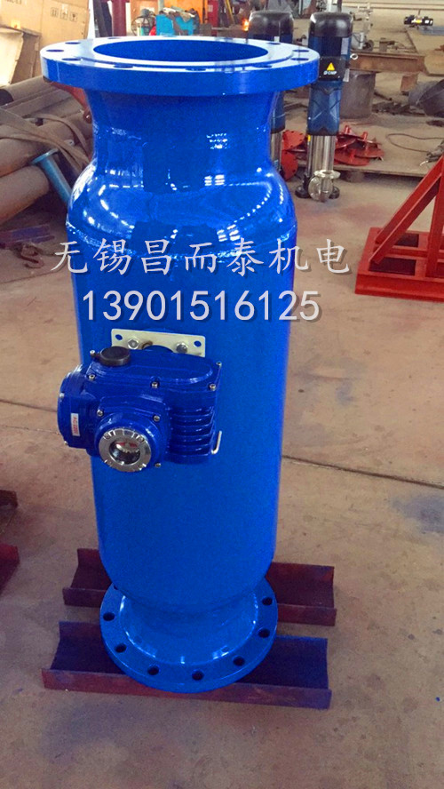 自動(dòng)排污過濾器主要由優(yōu)質(zhì)碳鋼筒體、特殊結(jié)構(gòu)的不銹鋼楔形濾網(wǎng)、電動(dòng)執(zhí)行機(jī)構(gòu)及排污裝置所組成。當(dāng)過濾器工作時(shí),電動(dòng)執(zhí)行機(jī)構(gòu)引導(dǎo)蝶閥處于開啟狀態(tài),水流由入口進(jìn)入過濾器,經(jīng)過濾網(wǎng)過濾到出口。當(dāng)過濾器需要排污時(shí),關(guān)閉蝶閥,打開電動(dòng)排污閥,水流經(jīng)濾網(wǎng)前半段過濾,部分水流由出口流入系統(tǒng),剩余水流由濾網(wǎng)后半段外側(cè)流入內(nèi)側(cè),經(jīng)排污口排出,起到反向自動(dòng)沖洗濾網(wǎng)的作用。這樣整個(gè)沖洗過程系統(tǒng)可正常運(yùn)行,無需停機(jī)。