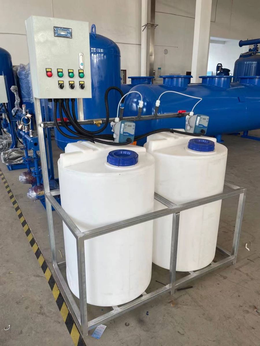 全自動(dòng)加藥裝置采用時(shí)間程序控制,此控制方式無需儀表的支持,首先根據(jù)系統(tǒng)的運(yùn)轉(zhuǎn)需要設(shè)定自動(dòng)加藥的周期、加藥量、加藥時(shí)間和加藥頻率。在以后的系統(tǒng)運(yùn)轉(zhuǎn)過程中,到加藥周期,計(jì)量泵自動(dòng)打開加藥,加到規(guī)定的時(shí)間計(jì)量泵關(guān)閉;到排污周期,計(jì)量泵停止加藥,排到規(guī)定的時(shí)間后,計(jì)量泵繼續(xù)開啟,補(bǔ)充排污損失掉的藥劑,把系統(tǒng)的含藥量維持在正常的水平、加到規(guī)定的時(shí)間計(jì)量泵關(guān)閉。