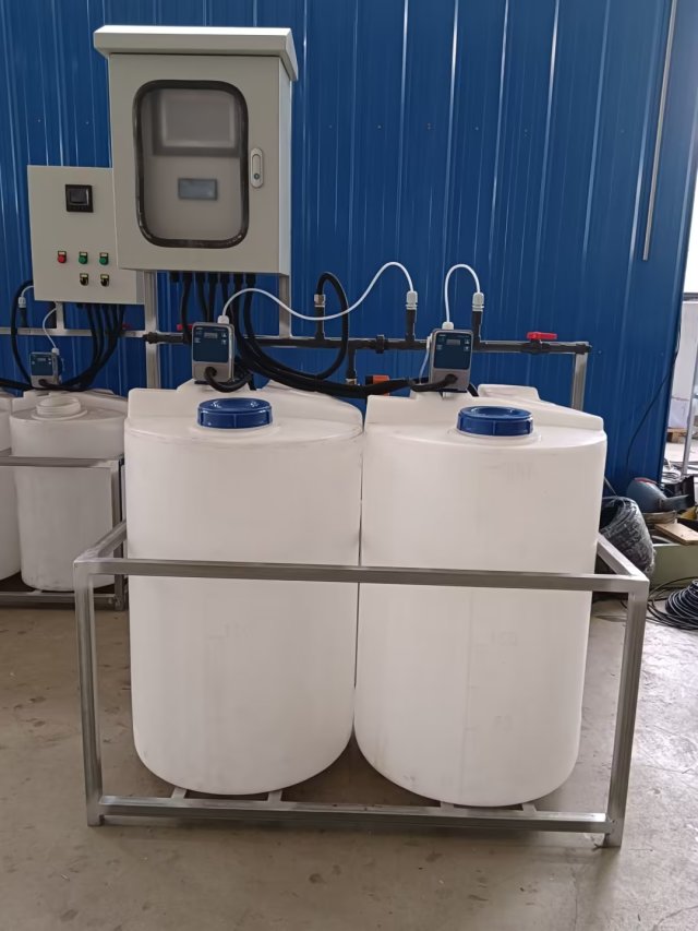 全自動(dòng)加藥裝置采用時(shí)間程序控制,此控制方式無(wú)需儀表的支持,首先根據(jù)系統(tǒng)的運(yùn)轉(zhuǎn)需要設(shè)定自動(dòng)加藥的周期、加藥量、加藥時(shí)間和加藥頻率。在以后的系統(tǒng)運(yùn)轉(zhuǎn)過(guò)程中,到加藥周期,計(jì)量泵自動(dòng)打開(kāi)加藥,加到規(guī)定的時(shí)間計(jì)量泵關(guān)閉;到排污周期,計(jì)量泵停止加藥,排到規(guī)定的時(shí)間后,計(jì)量泵繼續(xù)開(kāi)啟,補(bǔ)充排污損失掉的藥劑,把系統(tǒng)的含藥量維持在正常的水平、加到規(guī)定的時(shí)間計(jì)量泵關(guān)閉。