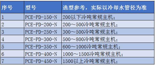 序號(hào) 型號(hào) 選型參考,實(shí)際以冷卻水管徑為準(zhǔn)