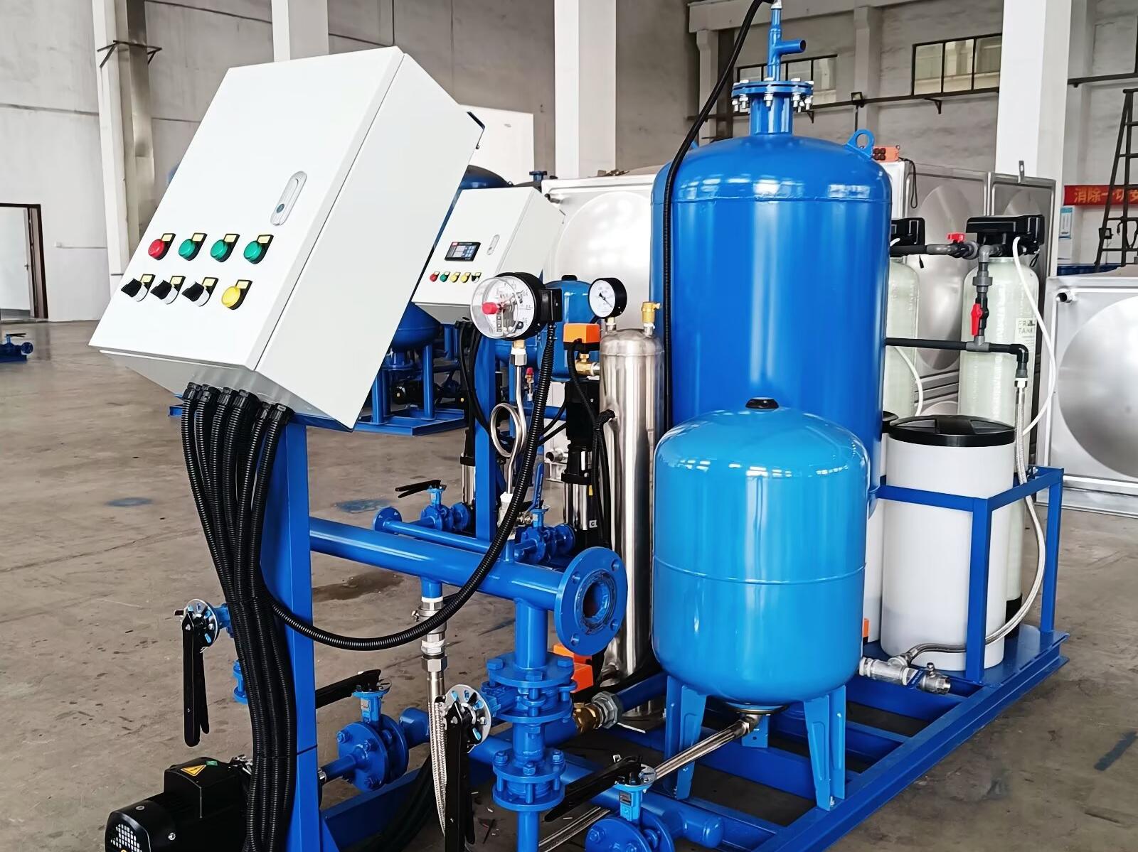 2、在商業(yè)領(lǐng)域,酒店、商場等場所的中央空調(diào)系統(tǒng)需要穩(wěn)定的水質(zhì)保障。定壓補(bǔ)水 + 軟水的集成水保組可以有效防止空調(diào)系統(tǒng)管道結(jié)垢,提高系統(tǒng)的運(yùn)行效率和使用壽命,同時還能降低能源消耗和維護(hù)成本。